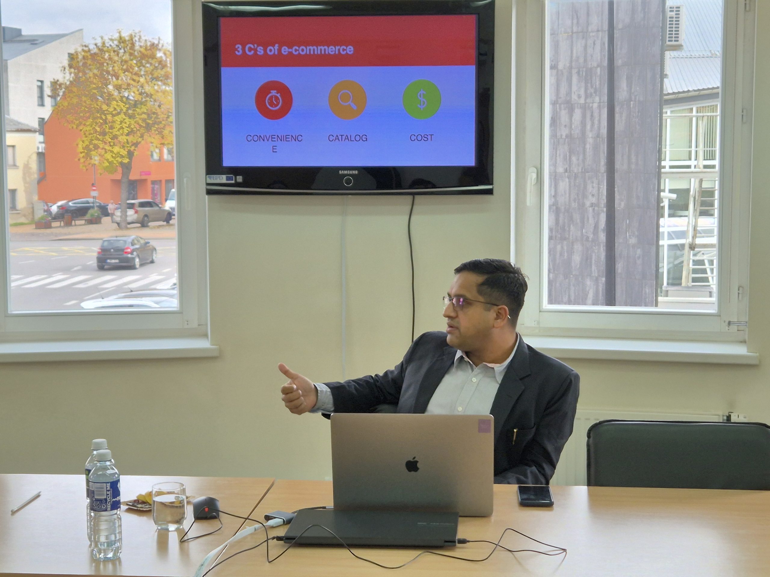 Spalio 9 d. Kauno kolegijos Alytaus fakultete vyko apskritojo stalo diskusija tema „Dirbtinio intelekto ir duomenų analizės panaudojimas tvarioms rinkodaros strategijoms globalioje ekonomikoje“. Diskusiją vedė vizituojantis dėstytojas iš Indijos dr. Rahul Sharma, šiuo metu dėstantis Alytaus fakulteto studentams intensyvų 10 dienų kursą skaitmeninio marketingo temomis.