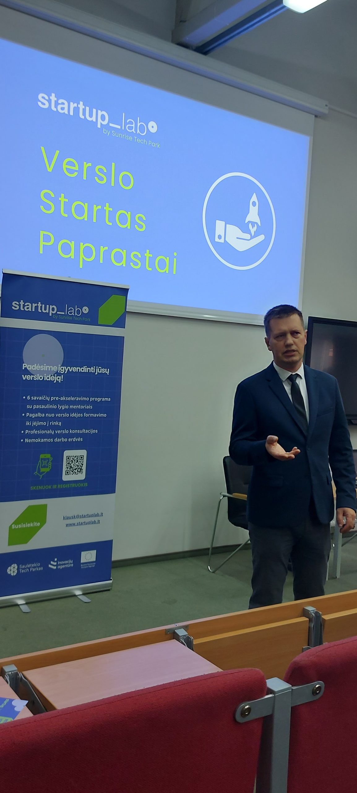 Spalio 14 d. Kauno kolegijos Alytaus fakultete įvyko renginys „Verslo startas paprastai. Kaip sukurti startuolį regione“, kuris subūrė verslumu besidominčius studentus ir bendruomenės narius. Renginį organizavo Startup Lab by Saulėtekio Tech Parkas kartu su Kauno kolegijos Alytaus fakultetu.