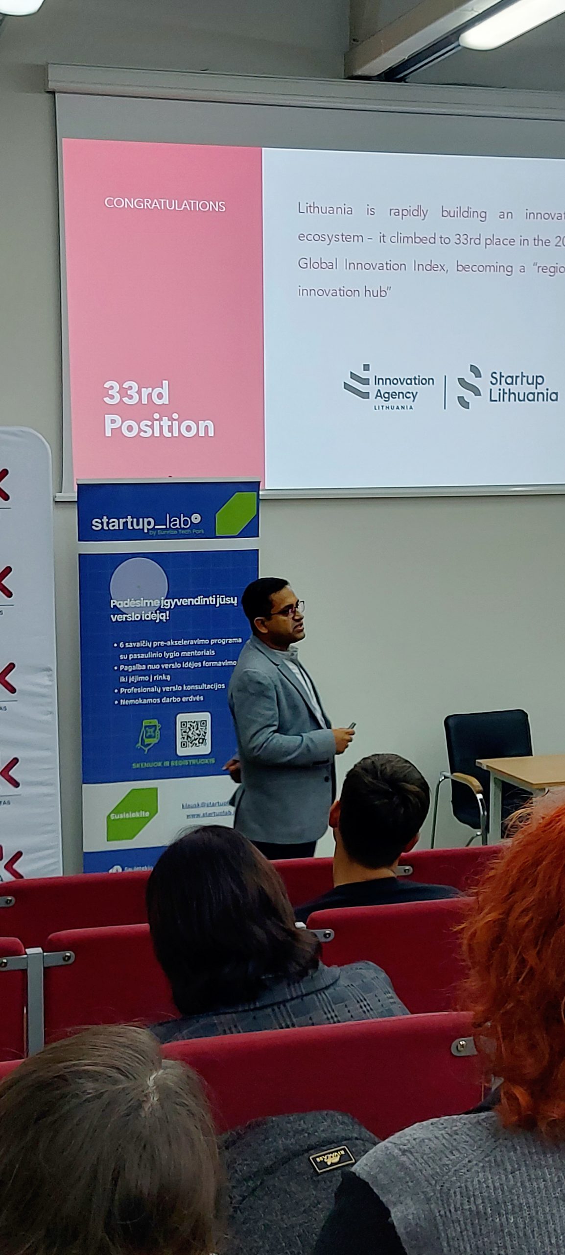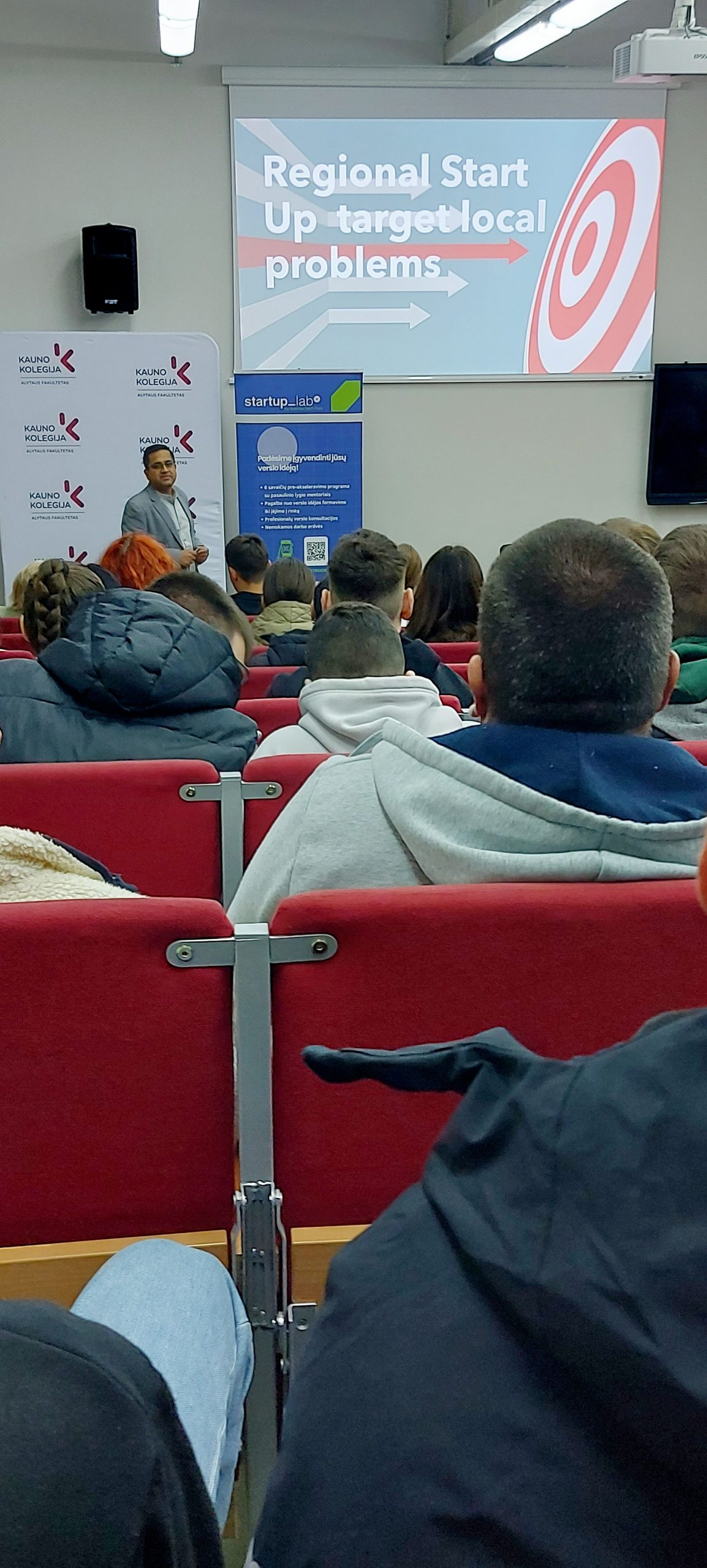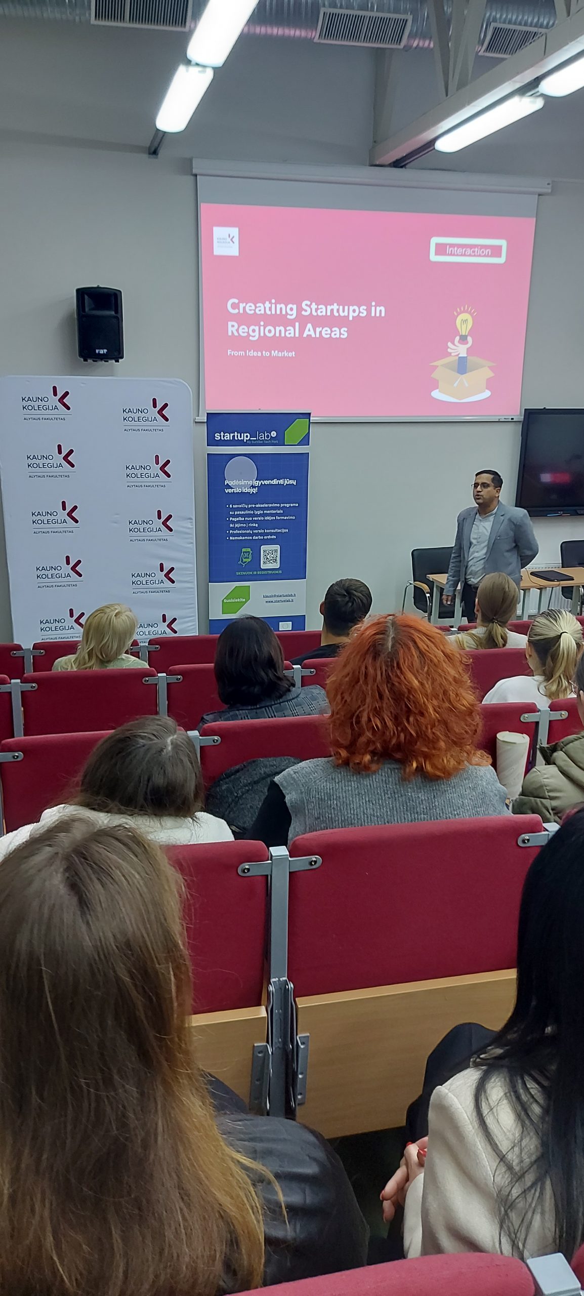 Dalyviai turėjo progą išgirsti verslumo ekosistemos pristatymą, kurį vedė Marius Sukesian, Saulėtekio slėnio mokslo ir technologijų parko atstovas. Pagrindiniu renginio akcentu tapo prof. dr. Rahul Sharma (Lovely Professional University, Indija) pranešimas „Creating Startups in Regional Areas: From Idea to Market“, kuris įkvėpė klausytojus pažvelgti į regioninio verslo galimybes globaliu mastu.