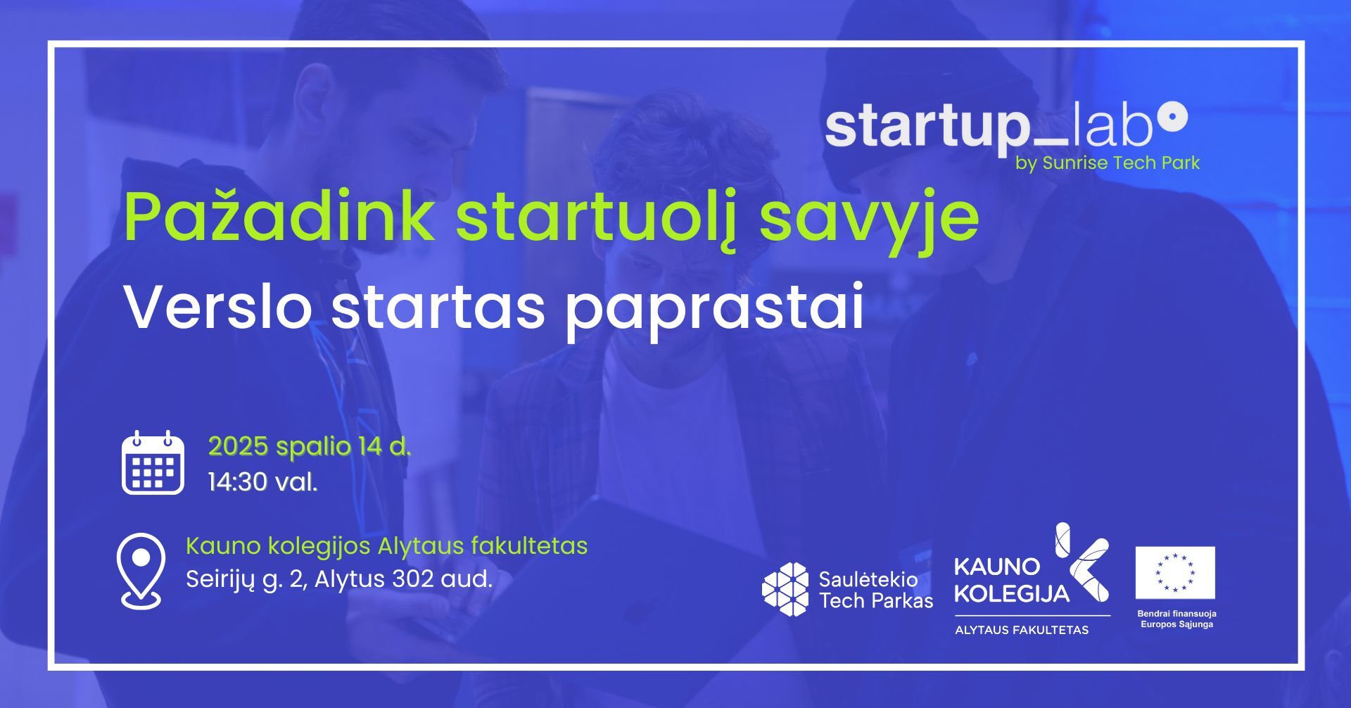 Startup_lab by Sunrise Tech Park kviečia Kauno kolegijos Alytaus fakulteto studentus ir bendruomenę į paskaitą: