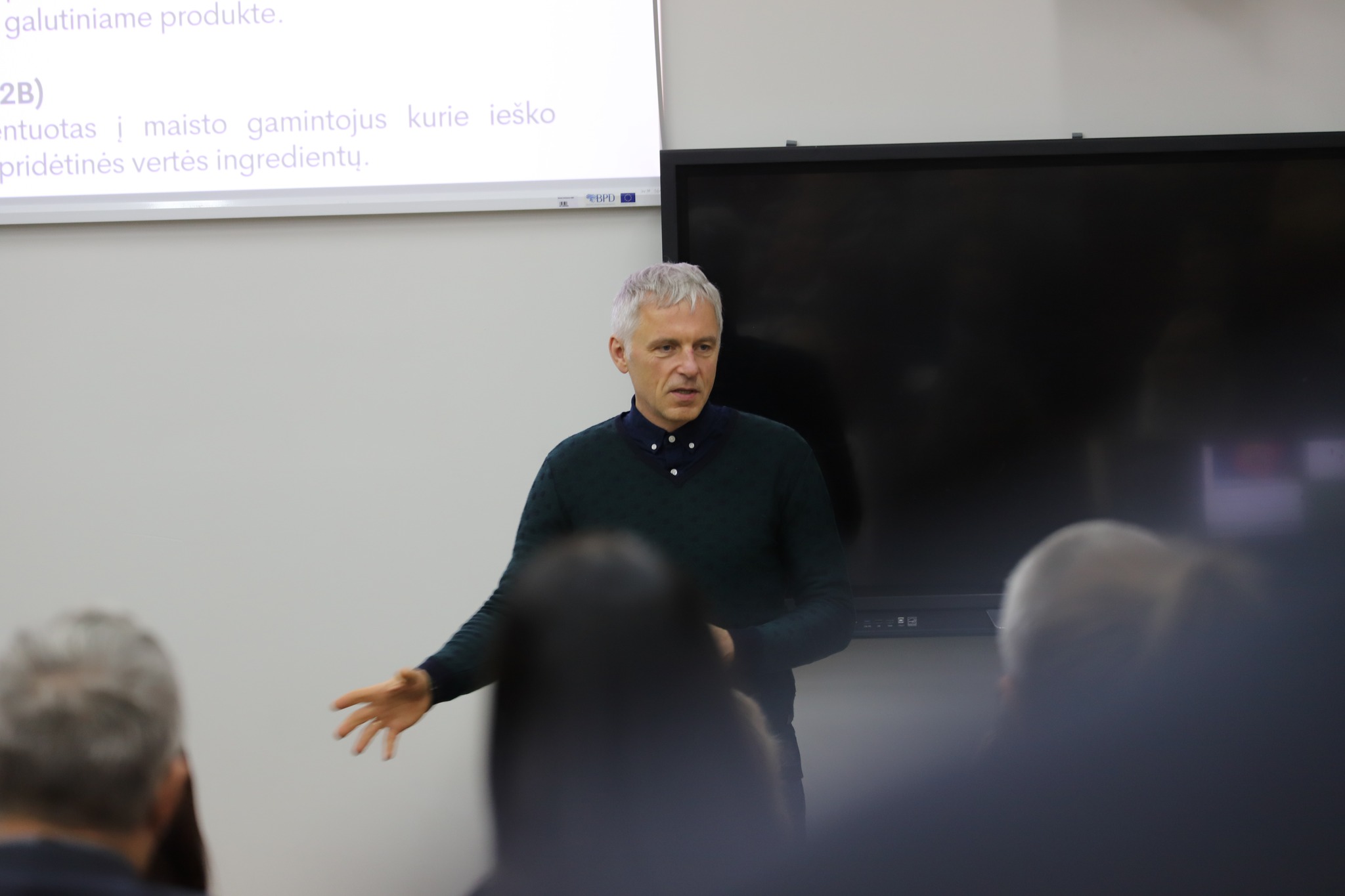 Renginio pranešimų dalyje diskutuota apie maisto sektoriaus transformaciją ir technologinius sprendimus. VšĮ „AgriFood Lithuania DIH“ projektų vadovas Romualdas Lapickis atskleidė, kaip inovacijos ir partnerystės gali kurti didesnę pridėtinę vertę tiek gamintojams, tiek vartotojams.